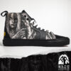 The sneakers feature a blacked-out, high-top silhouette, serving as the perfect canvas for Grindesignโs hauntingly intricate album artwork. The side panels explode with frenzied anatomical horror, showcasing the writhing, contorted imagery that defines Ekbomโs disturbing themes of delusions, self-destruction, and psychotic infestation. Vivid yet desaturated grays, deep blacks, and ghostly whites create a visceral contrast, as if the artwork itself is clawing its way off the shoe.