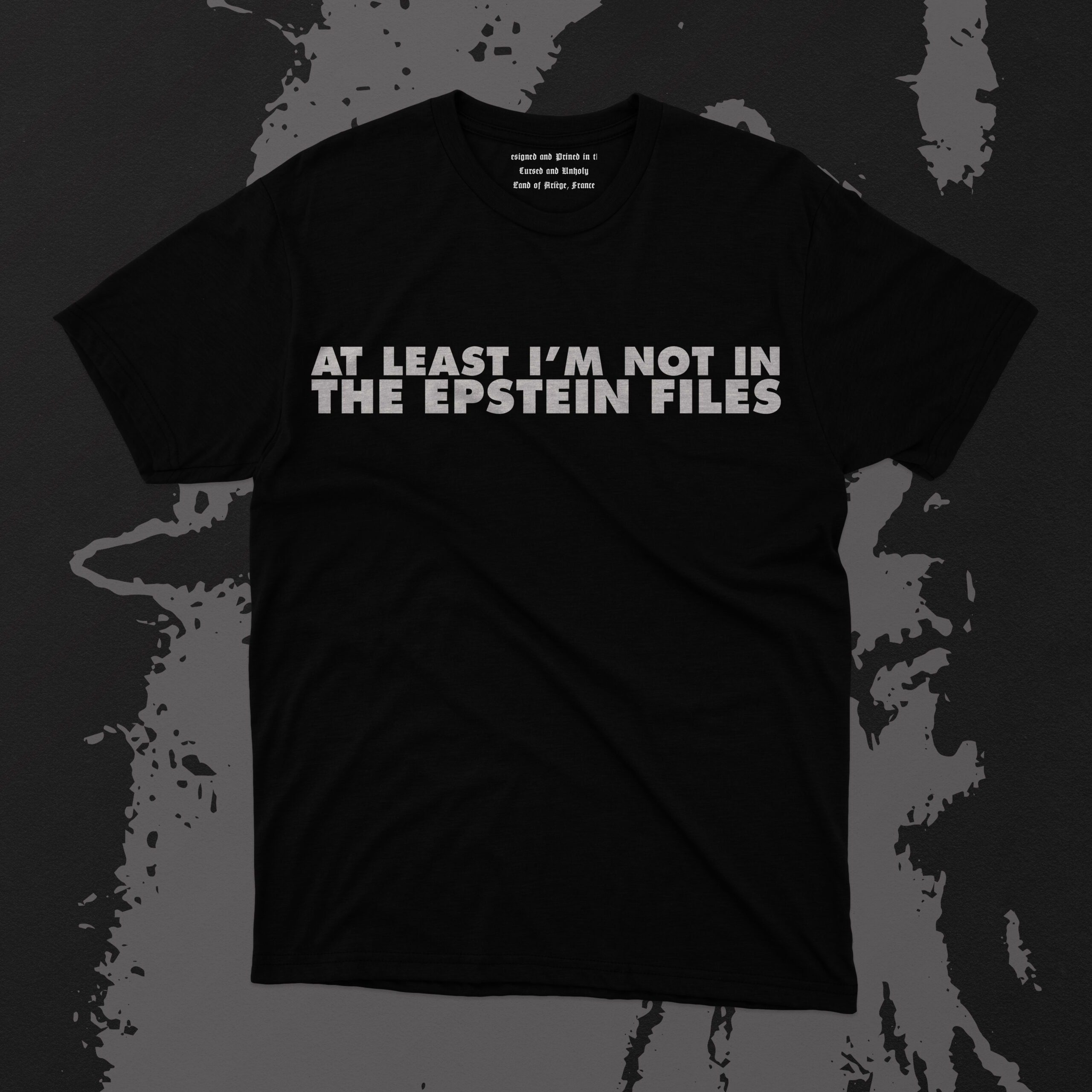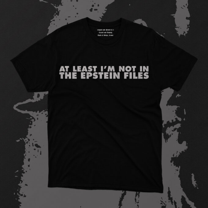 The โAt Least Iโm Not in the Epstein Filesโ t-shirt by Hate Couture is brutal satire stitched into heavyweight black cotton. Designed for those who prefer their fashion like their humor โ dark, sharp, and unapologetically cynical โ this piece turns one of the most controversial scandals of modern history into a statement of defiant irony.