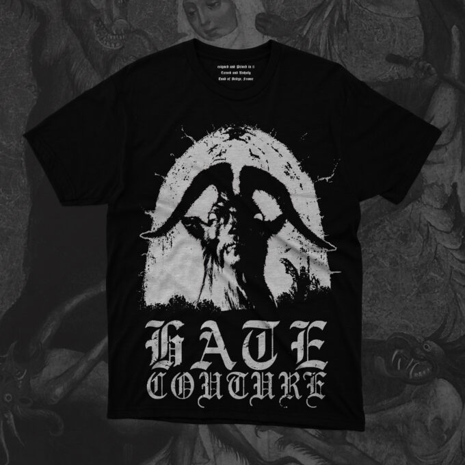 The Hate Couture Iconic Goat Logo T-Shirt is the flagship of our anti-brand โ€” aย  masterpiece that whispers blasphemy, inspired by everything your grandmother warned you about (and your therapist tries not to bring up), this goat isnโ€™t just a mascot โ€” itโ€™s a cult leader, a patron saint of beautiful nihilists, and an emblem of stylish misanthropy.