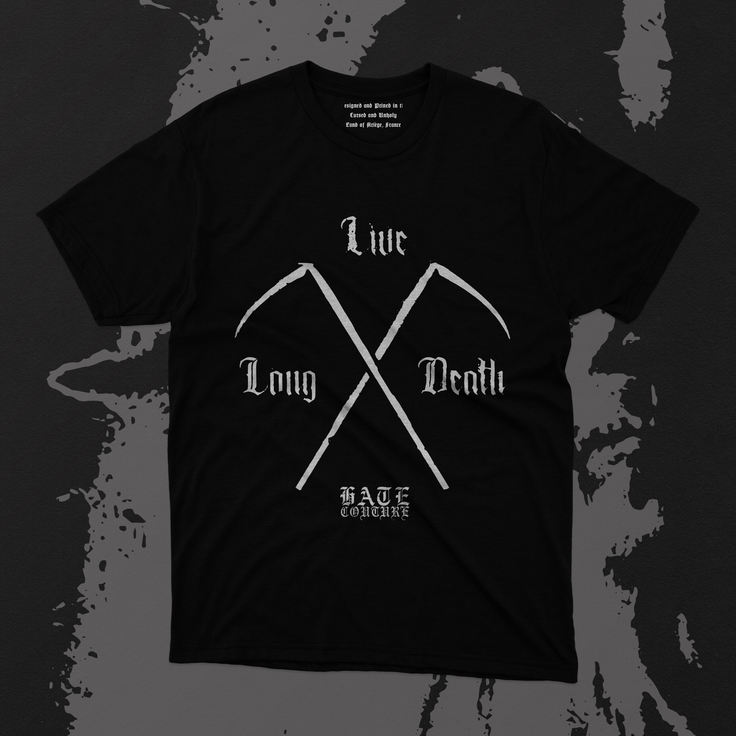Welcome to optimism, Hate Couture style. The โLong Live Deathโ t-shirt isnโt here to comfort you. Itโs here to smirk at the inevitable.