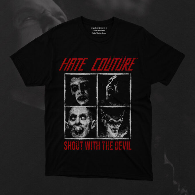 Rock, rebellion, and raw defiance collide in Hate Coutureโs Shout With The Devil T-shirtโan unholy fusion of satanic imagery, heavy metal attitude, and anti-establishment energy. Taking inspiration from the era of loud guitars, black leather, and occult-fueled controversy, this design is a middle finger to conformity and a battle cry for those who walk the left-hand path.